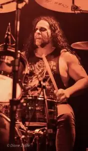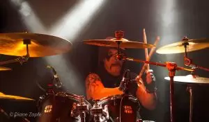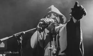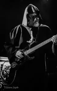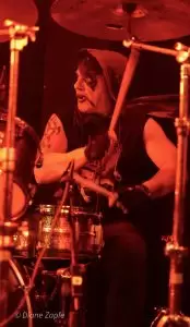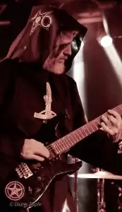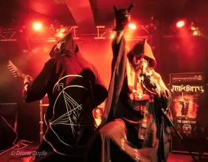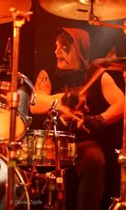 Impurity aus Brasilien, aktiv seit 1988, legten nach. Ram Priest, seit 1989 an den Vocals, brachte mit seiner Präsenz das Böse auf die Bühne. An seiner Seite: Ron Seth, ehemals Bassist, nun mit der Gitarre bewaffnet und Armando Leprous hinter dem Schlagzeug. Die Diskografie umfasst 4 Demos, 8 Alben, 1 EP, 8 Splits und 2 Compilations. Der Sound war ritualistisch, mit okkultem Einschlag – langsamer, doomiger, aber nicht weniger intensiv. In der zweiten Hälfte des Sets packten sie ihre schnelleren und noch härteren Song aus. So kam auch Armando richtig in Fahrt und dreschte los als ginge es um sein Leben. Was ein düstschwarzer Abend mit zwei excellenten Schlagzeugern im Gepäck. Ein echtes Ritual für Fans wie mich. Bravo.
