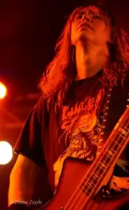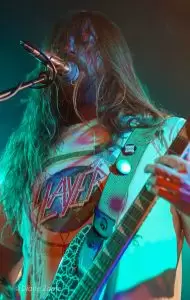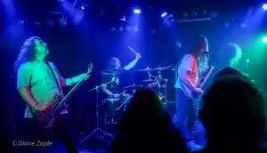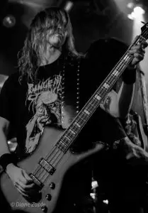 Molder seit 2017 aktiv und stilistisch fest im klassischen US-Death-Metal der späten 80er/ frühen 90er verwurzelt. Ihr aktuelles Album „Catastrophic Reconfiguration“(vom 8.November 2024) ist ein Manifest für schmutzigen, knochenknackenden Death Metal – und live liefern sie genau das. Mit tightem Spiel, rotzfrecher Attitüde und ein Hauch von Thrash-Energie preschten sie durch ihr Set. Hier gab es nicht die durchgehend tiefen Growls. Der Gesangsstil von Sänger Aaren Pantke wird eher mit dem vom Asphyxsänger Martin von Drunen verglichen – rauchige,screamige Growls teilweise dahingerotzt. Carlos Santini an der Gitarre, Dominic Vaia Bass und am Schlagzeug Kyle Pooley. Für einen Montagabend fanden sich genügend hartgesottene Fans ein, um nicht nur für ordentlich Stimmung (Andrej sei dank- lach) vor der Bühne zu sorgen, sondern auch eine Zugabe zu fordern, die gegeben wurde. Mega, die Amerikaner brachten eine Spiellaune mit, die sich eins zu eins auf die Zuschauer übertrug. Ich persönlich war hellauf begeistert, Molder haben einfach nur richtig Spaß gemacht. Punkt.