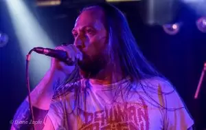 Als Headliner betraten Defeated Sanity die kleine, feine Goldgrubenbühne und wir wussten – jetzt wird es ernst. Seit 1993 aktiv, gegründet von dem mittlerweile verstorbenen Jazz-Schlagzeuger Wolfgang Teske und seinem Sohn Lille Gruber, gilt die Band als einer der komplexesten und innovativsten Vertreter des Technical Brutal Death Metal weltweit. Heute ist Defeated Sanity ein transatlantisches Projekt mit Mitgliedern aus Deutschland und den USA. Ein Paradebespiel für brutale Musikalität auf höchstem Niveau. Kein Wunder, dass Sanguisugabogg sich die Band für einen gemeinsamen aktuellen Song ausgesucht hat:“Abhorrent Contraception“. Was folgte, war ein technisch präziser, fast schon surreal brutales Set voller rhythmischer Brechungen, Fingerverknotungs-Gitarrenriffs und gutturaler Vokalakrobatik in tiefste Tiefen. Das Schlagzeugspiel eines Lille Gruber ist nicht nur schnell, sondern intelligent, kontrolliert und absolut brilliant. Die fast ausverkaufte Grube verwandelte sich schnell in eine überhitzte, brodelnde Sauna und den Fans stand zum Schluß die Faszination über diesen harten wie genialen Gig ins Gesicht geschrieben.