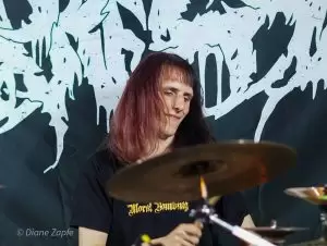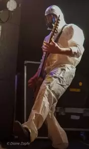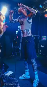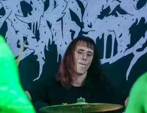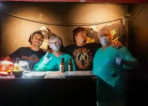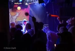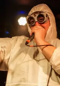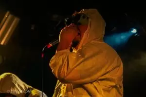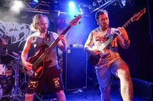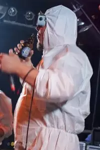 Nach der intensiven Eröffnung durch Repressed war es Zeit für das Spektakel, auf das alle gewartet hatten: Gutalax aus Tschechien, die Meister des „Klo-Grindcore“, feierten an diesem Abend nicht nur ihren Auftritt, sondern zugleich ihr 15-jähriges Bandbestehen. Schon die Ankündigung des Konzerts hatte für enorme Resonanz gesorgt – die Show war im Nu ausverkauft. Statt der eigentlich möglichen 200 Tickets entschied man sich bewusst für nur 150 Gäste, damit auf der Tanzfläche genügend Platz zum ausgelassenen Feiern blieb. Und ausgelassen wurde es sofort: Die Musiker betraten die Bühne in ihren typischen weißen Schutzanzügen, einer davon mit Atemschutzmaske, der Sänger wie gewohnt mit seiner markanten Schweißerbrille. Mit dem ersten Ton brach eine Feier los, die mehr einem anarchischen Happening als einem gewöhnlichen Konzert glich. Klobürsten, aufblasbare Utensilien aller Art und natürlich reichlich Toilettenpapier, das wie Schneeflocken durch den Raum wirbelte, gehörten zur Grundausstattung. Bemerkenswert war auch, dass Teile des Publikums den Spaß mitmachten: Einige Fans trugen ebenfalls weiße Overalls, zwei Besucher tauchten sogar stilecht im kompletten OP-Outfit mit Haarnetz und Hygienefüßlingen auf – ein Bild, das den absurden Charme des Abends perfekt einfing. Musikalisch lieferten Gutalax genau das, was die Szene seit Jahren liebt: ultrakurze, druckvolle Grindcore-Songs, dazu der mittlerweile legendäre „Schnorchelgesang“, der jedes Mal für kollektives Gelächter und euphorische Rufe aus dem Publikum sorgt. Das Ganze wirkte weniger wie ein Konzert, sondern mehr wie eine Feier im Ausnahmezustand, bei der jede Sekunde etwas Neues durch den Raum flog, jemand tanzte, lachte oder mitgröhlte. Nach einer Stunde war die Halle ein einziges Chaos aus verschwitzten Körpern, Klopapierfetzen und glücklichen Gesichtern. Gutalax hatten wieder einmal bewiesen, dass sie mit ihrem absurd-sympathischen Konzept keine Grenzen kennen und dass Grindcore auch ein großes, ausgelassenes Fest sein kann.
