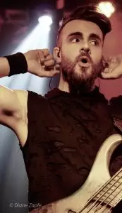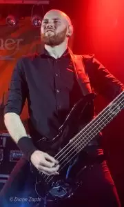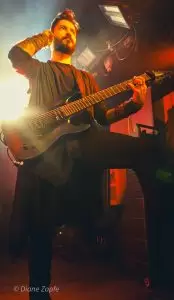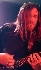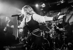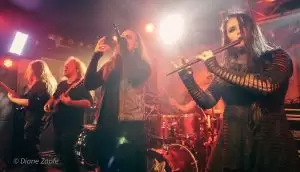 Schon vor dem Eingang war klar: Dieser Abend würde etwas Besonderes. Das Konzert war später restlos ausverkauft und eine Menschenschlange stand auf der Straße an. Drinnen dröhnten bereits die ersten Klänge – ich hatte es nicht rechtzeitig geschafft und Valhalore aus Brisbane, Australien, waren mitten im Set. Kaum war ich durch die Menge gedrängt, fand ich meinen Platz in der ersten Reihe, etwas rechts von der Bühne, bei bekannten Gesichtern, mit der Kamera fest in der Hand. Von hier aus konnte ich jede Bewegung, jeden Schweißtropfen und jedes Lächeln sehen. Das Lächeln stand den Musikern besonders gut, denn sie hatten zum ersten Mal die Gelegeheit in Deutschland aufzutreten und sprühten nur so vor Enthusiasmus und Spielfreude. Ihr epischer Folk Metal füllte die kleine Kasseler Location mit der Wucht von fünf erstklassigen Musikern. Die Flöte von Sophie Christensen tanzte über die donnernden Gitarren, während Sänger Lachlan Neate und Gitarrist Anthony Willis, die Gründungsmitglieder, das Publikum mit ansteckender Leidenschaft führten. Songs aus dem aktuellen Album „Beyond The Stars“ verschmolzen mit Klassikern aus „Voyage Into Eternity“. Gefühlt war das Set viel zu schnell vorbei. Großartiger Auftakt.