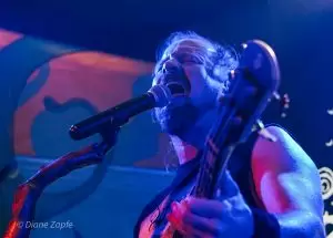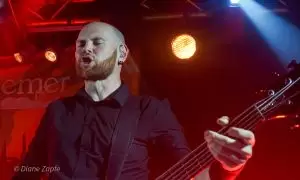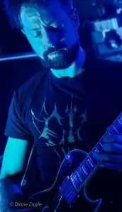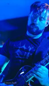 Dann wurde es atmosphärisch und melancholisch – Waldgeflüster aus München betraten die Bühne. Winterherz, alias Jan van Berlekom, führte die Band mit ruhiger Präsenz, fast wie ein Schamane. Ihre Songs waren keine gewöhnlichen Stücke, sondern Klanglandschaften. Nebel zog auf, das Licht wurde bläulich gedämpft und die Stimmen des Publikums verklangen. Mit jedem Akkord aus „Knochengesänge“ und „Knochengesänge II“, dem taufrischen Doppelrelease vom 7. November, schien die Zeit stillzustehen. Der vorletzte Song „Unter brozenen Kronen“ legte sich wie ein stilles Gebet über die Menge, bevor der Titeltrack „Knochengesänge“ als Abschlussstück noch einmal alle Emotionen freisetzte. Ein kathartischer Moment, den man nicht so schnell vergisst.
