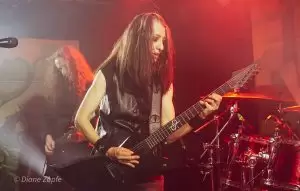 Und dann kam der Headliner: Aephanemer aus Toulouse, Frankreich. Mit ihrer Mischung aus symphonischem Glanz und Death-Metal-Wucht erorberten sie die Bühne im Sturm. Songs vom neuen Album „Utopie“ (erschienen am 31.Oktober) ließen das Publikum jubeln, mitklatschen und headbangen. Sie spielten komplett Utopia I und Utopia II, als Zugabe gab es „Bloodline“. Die orchestralen Elemente verschmolzen mit messerscharfen Riffs und die Band zeigte, wie perfekt Virtuosität und Gefühl Hand in Hand gehen können. Wie mühelos die zierliche Sängerin von Growls in opernartige Stimmlage wechseln konnte, war mehr als beeindruckend. Jede Note war präzise, jede Geste ehrlich. Ein würdiger Abschluss eines außergewöhnlichen Abends.