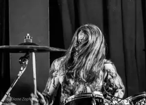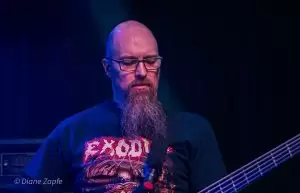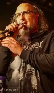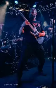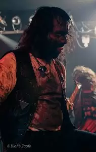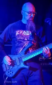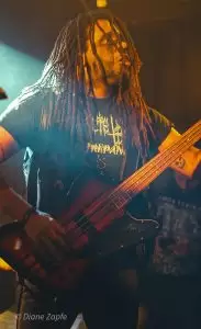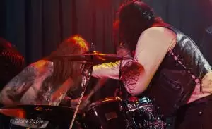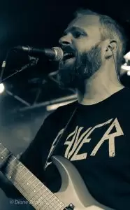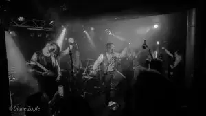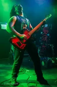 Derweil trudelten Sandra und Thomas ein und wir positionierten uns wie immer vor der Bühne. Da der Starfotograf und Skulls and Bones Magazine Herausgeber Karsten Oliver Schulze sich schon am Pfosten plaziert hatte, kam ich mir etwas überflüssig vor. Nichtsdestotrotz gab ich mein Bestes und bei FUNERAL XTC erkannte ich gleich den Sänger von Mesmerized wieder, der mit dem Gitarristen sich nun mehr auf dieses Bandprojekt fokosiert. Sie lieferten einen gut hörbaren Thrash-Metal ab…