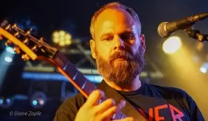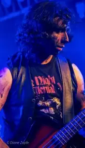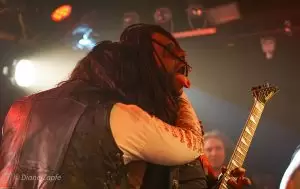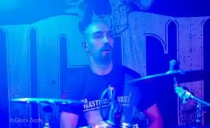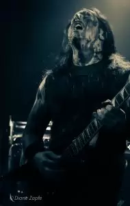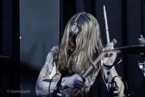 Und dann kam auch schon Imha Tarikat. Zumindest auf die Bühne, denn der Soundcheck wollte irgendwie nicht enden und verzweifelte Zuschauer machten sich Luft: „Ach, fangt doch einfach an zu spielen.“ Da die Introeinspielungen auch nicht funktionierten, verzichtete man darauf und fing wirklich an zu spielen. Aber irgendwie war die Stimmung gekippt, es gab kaum Applaus und es wurde immer leerer. Bei dem einen Song wurden zwei Bandmitglieder an Gitarre und Bass gewechselt. Das wäre auch kein Problem gewesen, wenn nicht beim Zurückwechseln die eine Gitarre tot gewesen wäre. Etwas improvisieren bis es wieder ging. Mit voller Wucht hauten sie ihr „Radical Rightousness“ raus und die verbliebene Fangemeinde taute auf. Danach „Son Of Ultradevotion“ und beim Drumsolo hatten sie mich wieder. Bitte behaltet diesen Schlagzeuger. Bei „Imha Tarikati“ fingen die Soundprobleme an, aber Kerem Yilmaz schrie seine Wut ins Mikro: „Vergesst die Musik, wir sind hier und brennen für euch, lasst alles raus, hier und jetzt ist die Gelegenheit all die Wut und den aufgestauten Frust loszuwerden.“ Das damit gemeint war, sich das Mikro vor den Kopp zu kloppen, wie Herr Heiko Glamtner es tat, sagte er nicht dazu. Heiko hätte das wohl bei Teethgrinder so gelernt, aber dann doch gegen den Sänger verloren. Aha…