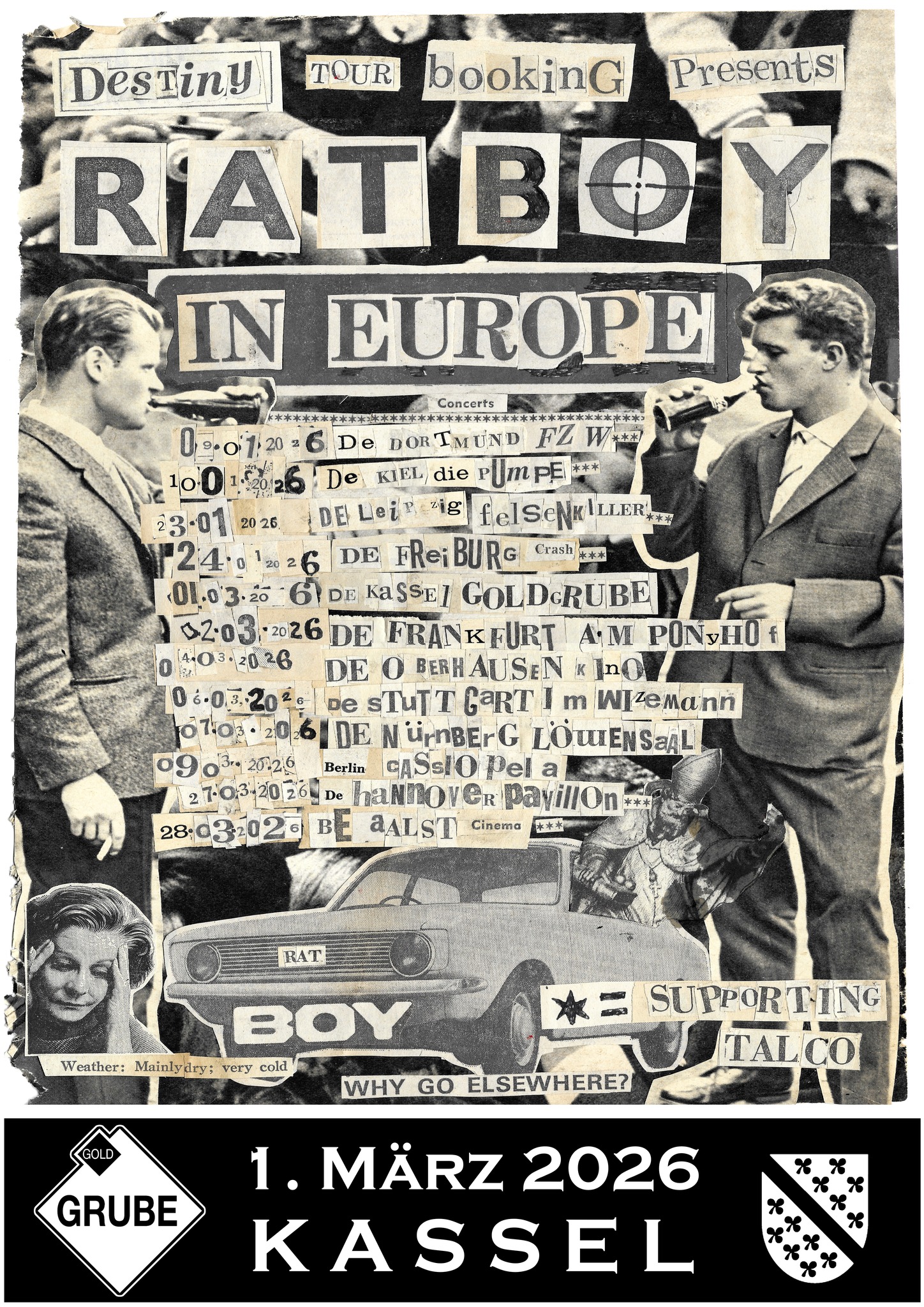 Goldgrube Kassel Eisenschmiede 85, Kassel, Hessen, DeutschlandDestiny Tourbooking und OK Concerts präsentieren 🔥 RAT BOY 🔥 in Europe 2026 Nach über einem Jahrzehnt internationaler Konzerte, von China bis Japan und den USA, kehrt RAT BOY 2026 […]