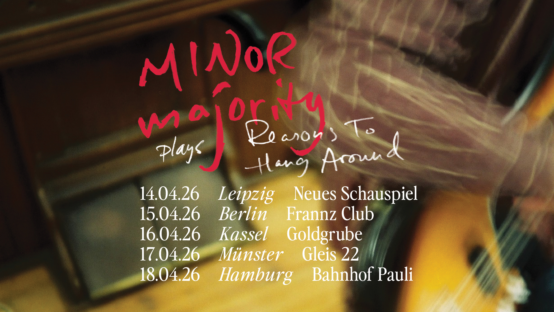 Im Januar 2026 feiern Minor Majority aus Norwegen das 20-jährige Jubiläum ihres vierten Albums Reasons to Hang Around. Die Band begeht diesen Anlass mit einer Jubiläumstour, bei der das Album in voller Länge gespielt wird. Das Konzert wird in zwei Teile gegliedert: Zunächst spielt die Band das Album, das gefeiert wird, danach folgen ausgewählte Titel aus ihrer gesamten Karriere.